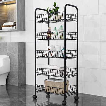 Estante negro de cocina multifuncional, estante de almacenamiento rodante estrecho para baño, estante de hierro forjado de Metal para sala de estar